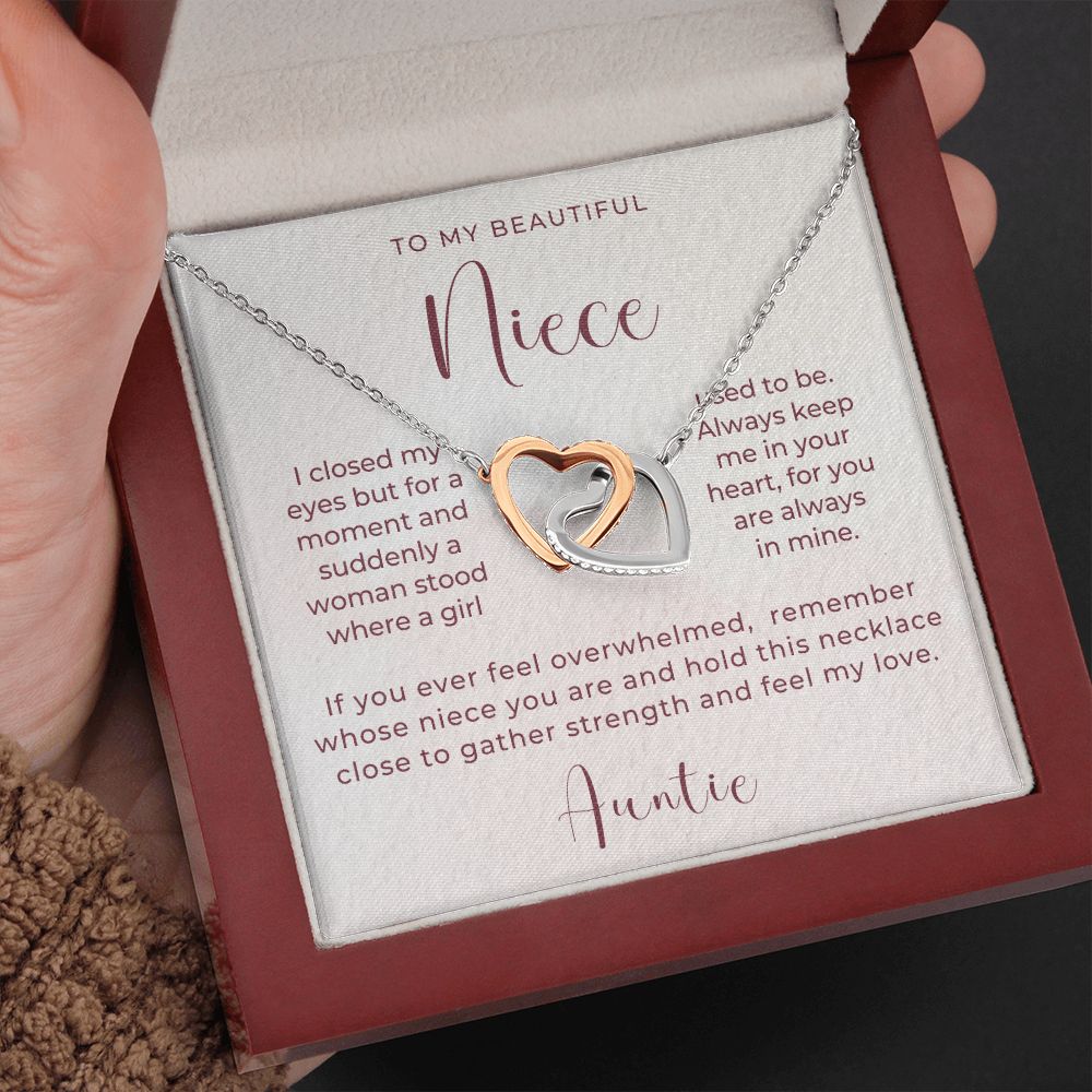 I closed my eyes but for a moment and suddenly a woman stood where a girl used to be. Always keep me in your heart, for you are always in mine. If you ever feel overwhelmed, remember whose niece you are and hold this necklace close to gather strength and feel my love.