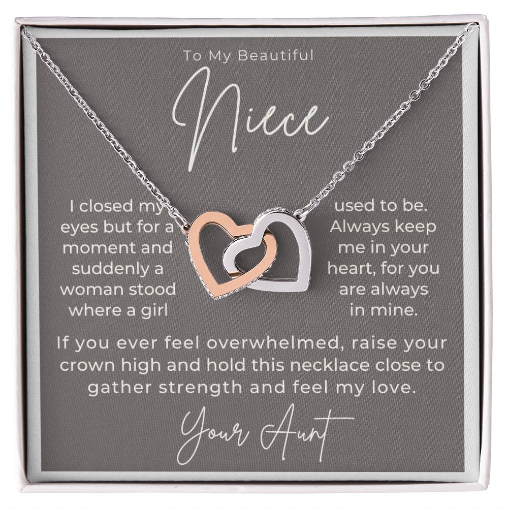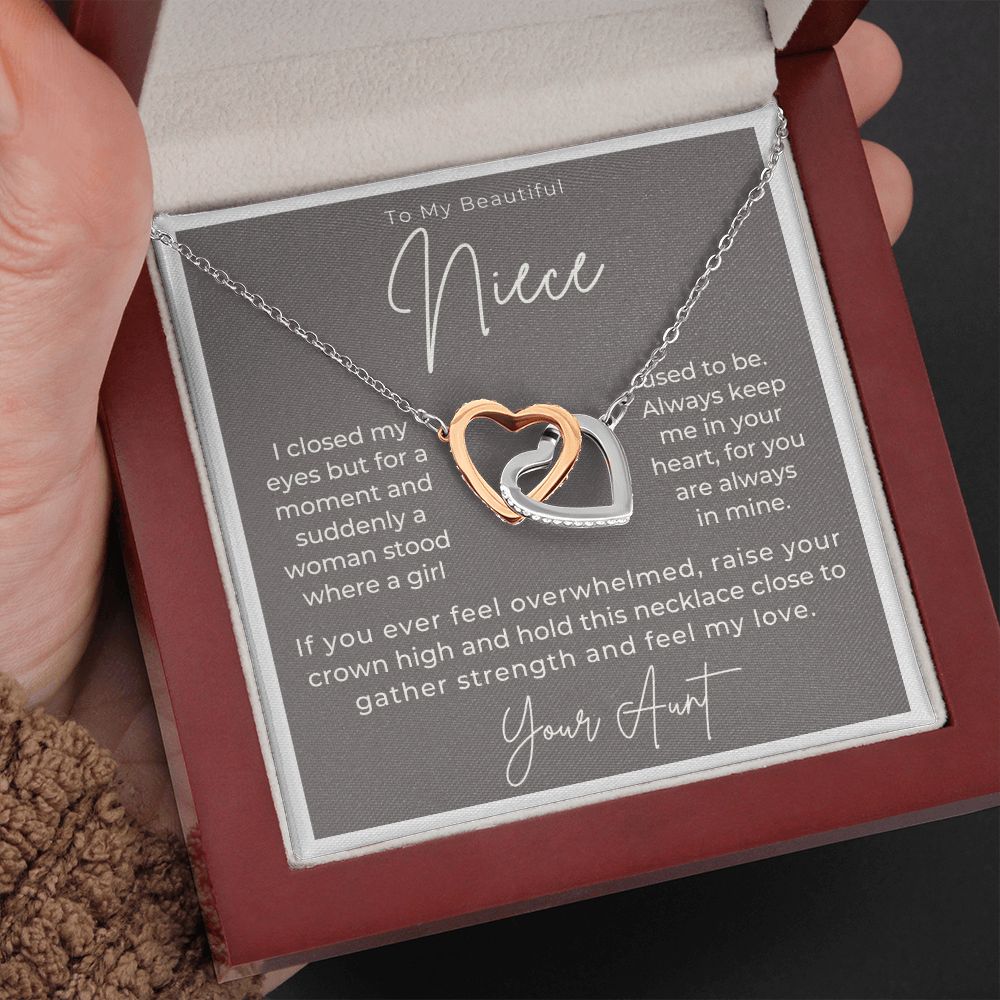 I closed my eyes but for a moment and suddenly a woman stood where a girl used to be. Always keep me in your heart, for you are always in mine. If you ever feel overwhelmed, remember whose niece you are and hold this necklace close to gather strength and feel my love.
