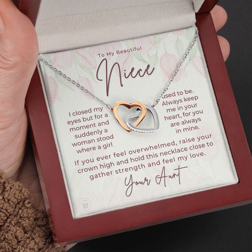 I closed my eyes but for a moment and suddenly a woman stood where a girl used to be. Always keep me in your heart, for you are always in mine. If you ever feel overwhelmed, remember whose niece you are and hold this necklace close to gather strength and feel my love.