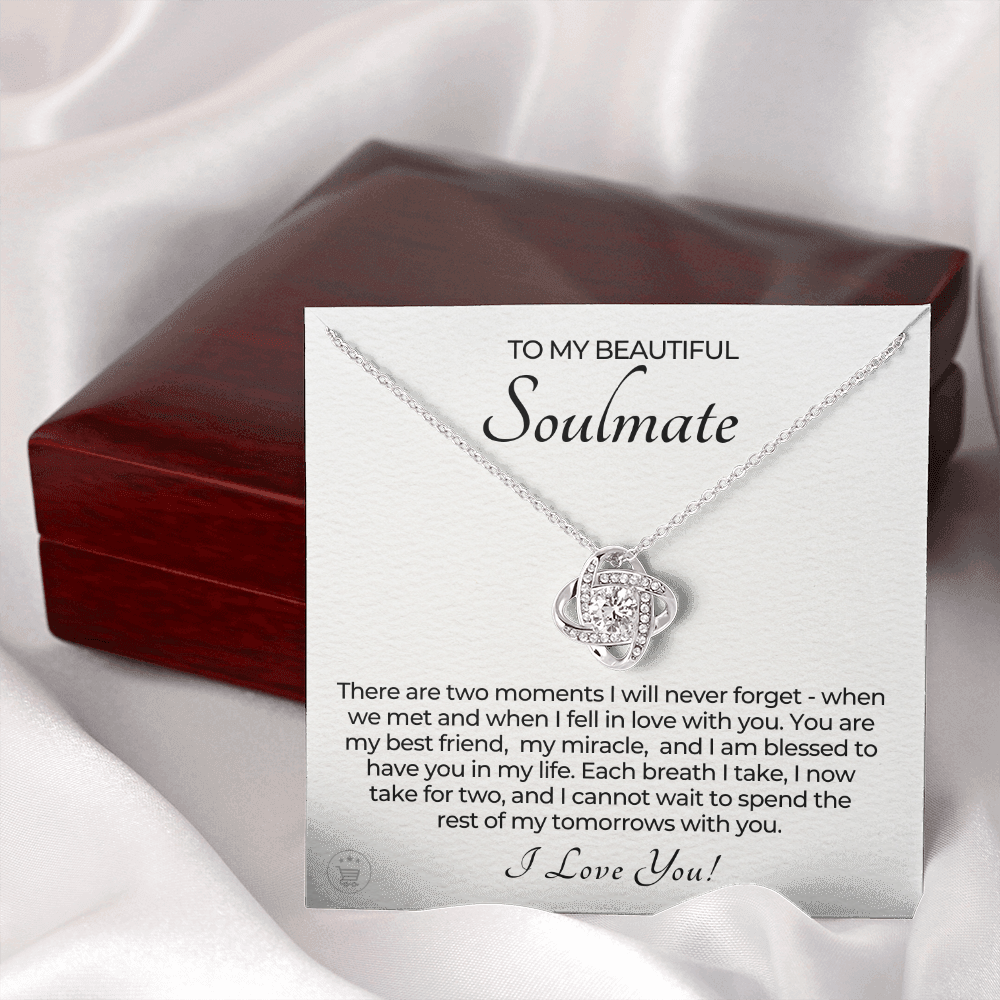 If you’re looking for a unique and special gift to give your soulmate on a special occasion, then look no further! This beautiful necklace is crafted with love and thoughtfulness. The pendant necklace comes in an elegant gift box with a sweet message that will surely make your soulmate feel loved and appreciated!