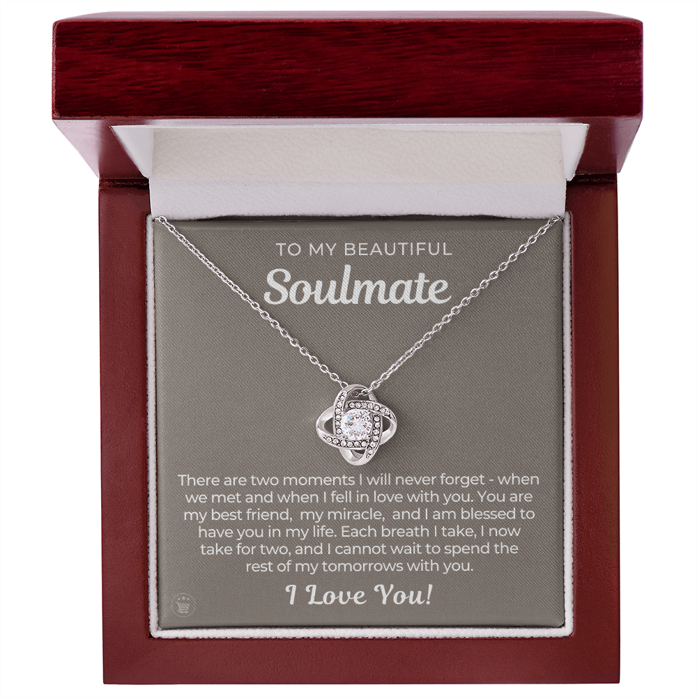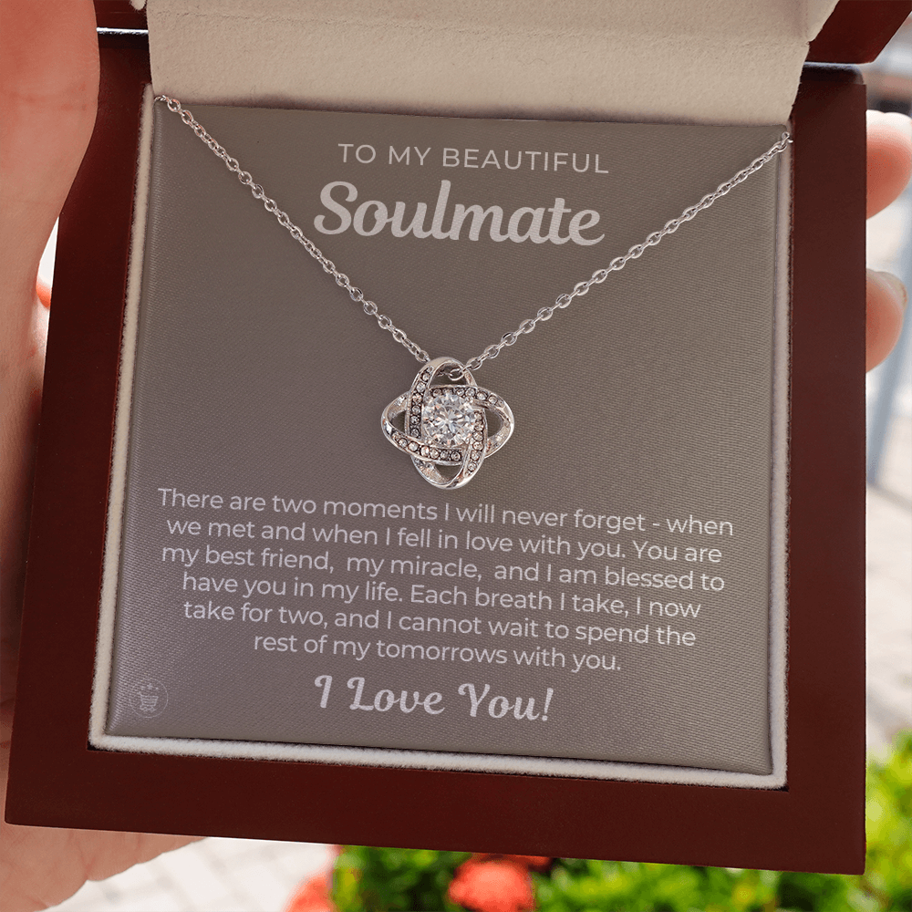 If you’re looking for a unique and special gift to give your soulmate on a special occasion, then look no further! This beautiful necklace is crafted with love and thoughtfulness. The pendant necklace comes in an elegant gift box with a sweet message that will surely make your soulmate feel loved and appreciated!