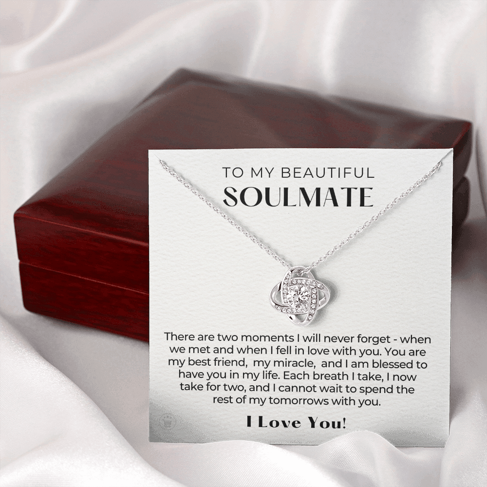 If you’re looking for a unique and special gift to give your soulmate on a special occasion, then look no further! This beautiful necklace is crafted with love and thoughtfulness. The pendant necklace comes in an elegant gift box with a sweet message that will surely make your soulmate feel loved and appreciated!