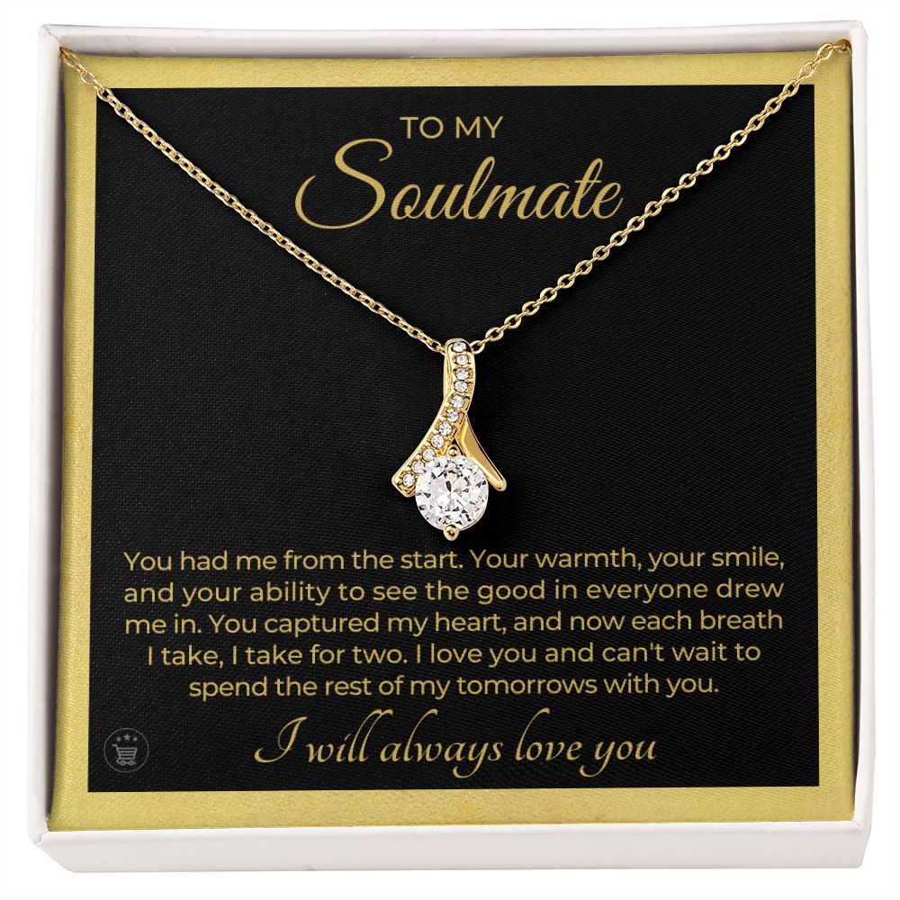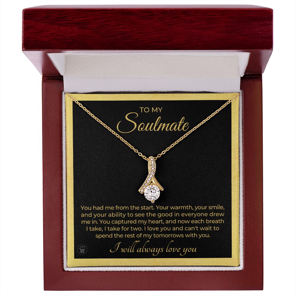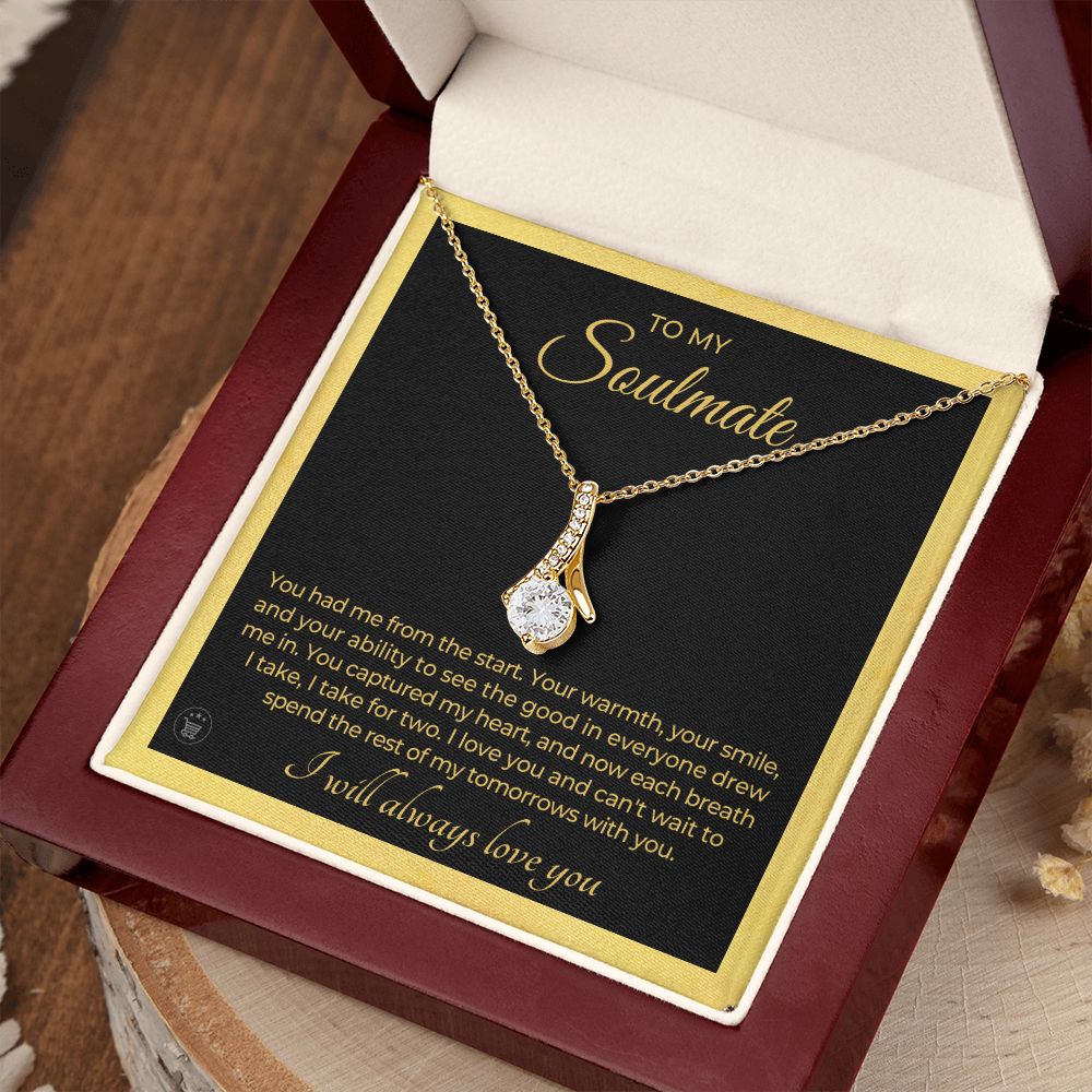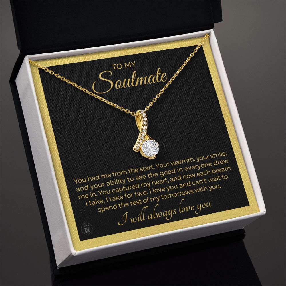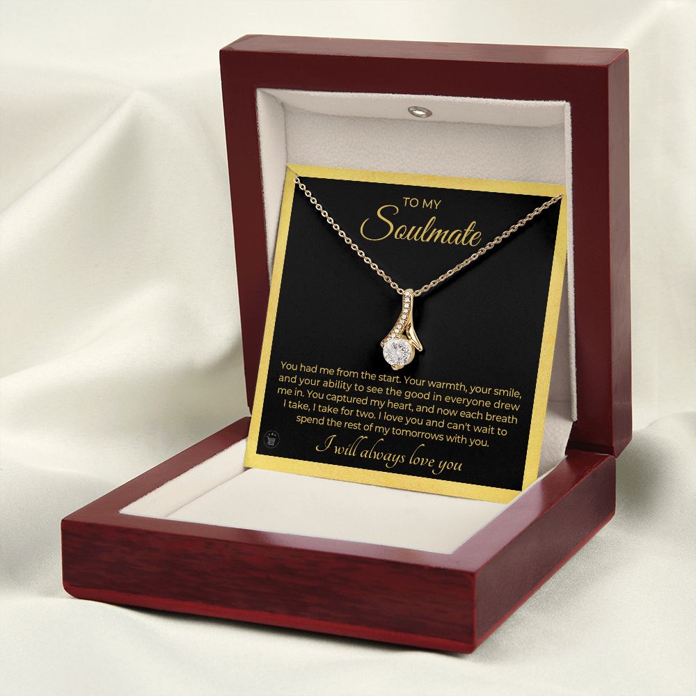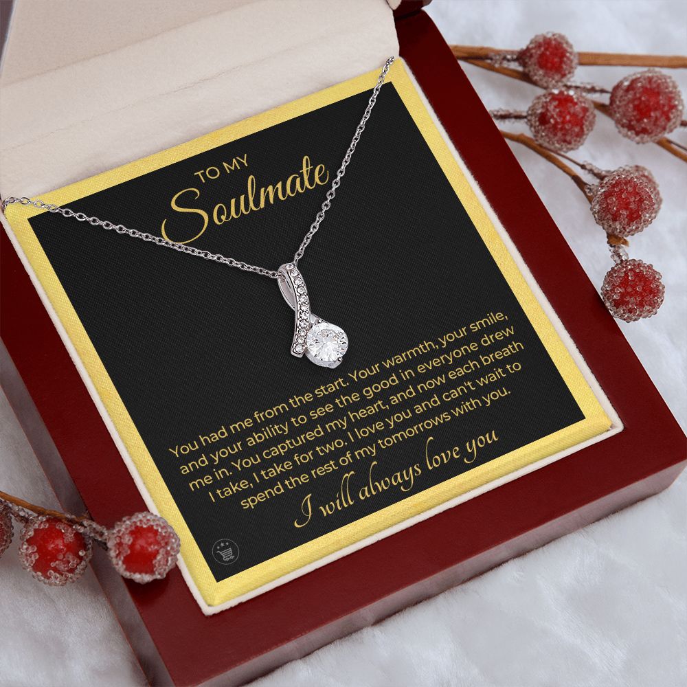 If you’re looking for a unique and special gift to give your soulmate on a special occasion, then look no further! This beautiful necklace is crafted with love and thoughtfulness. The pendant necklace comes in an elegant gift box with a sweet message that will surely make your soulmate feel loved and appreciated!