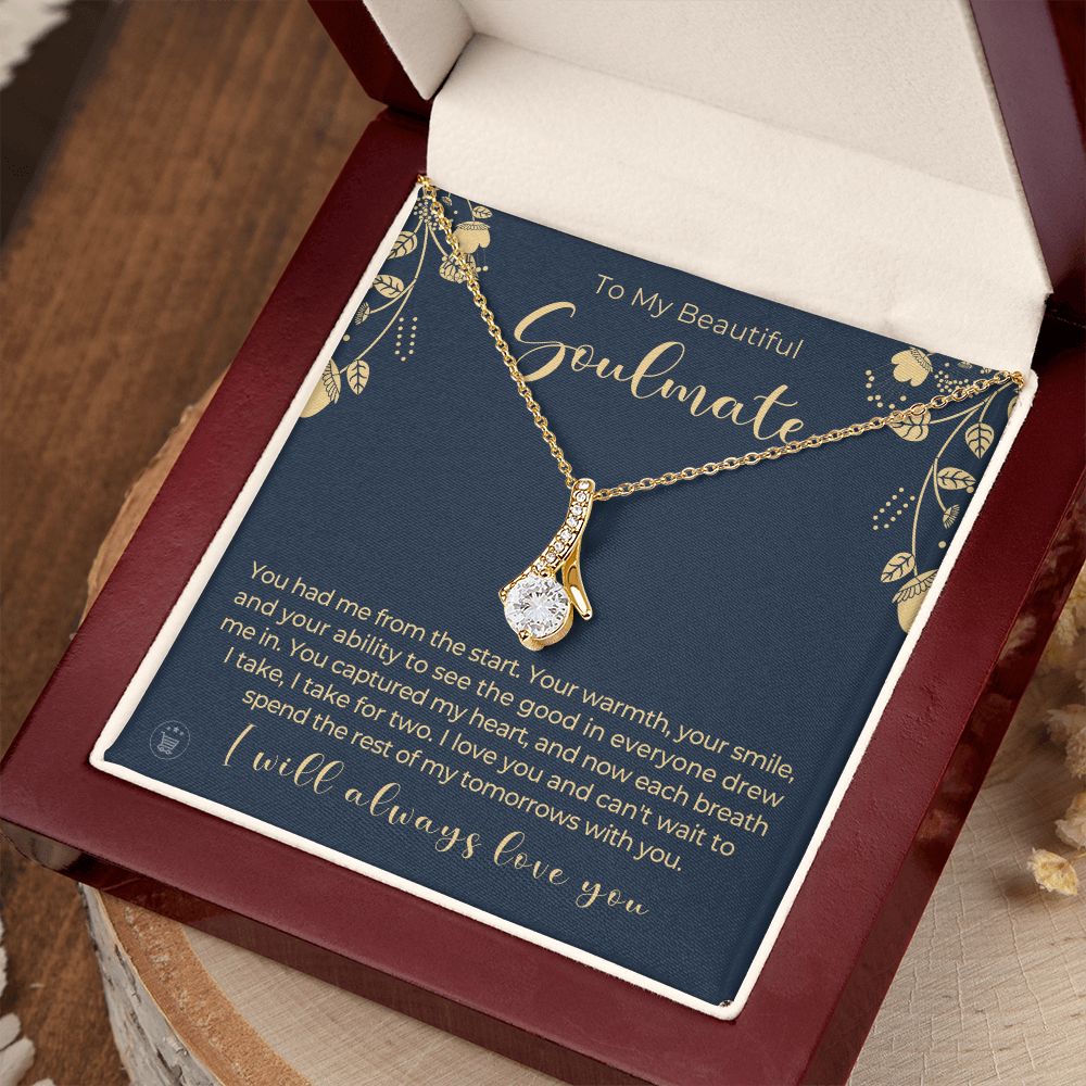 If you’re looking for a unique and special gift to give your soulmate on a special occasion, then look no further! This beautiful necklace is crafted with love and thoughtfulness. The pendant necklace comes in an elegant gift box with a sweet message that will surely make your soulmate feel loved and appreciated!