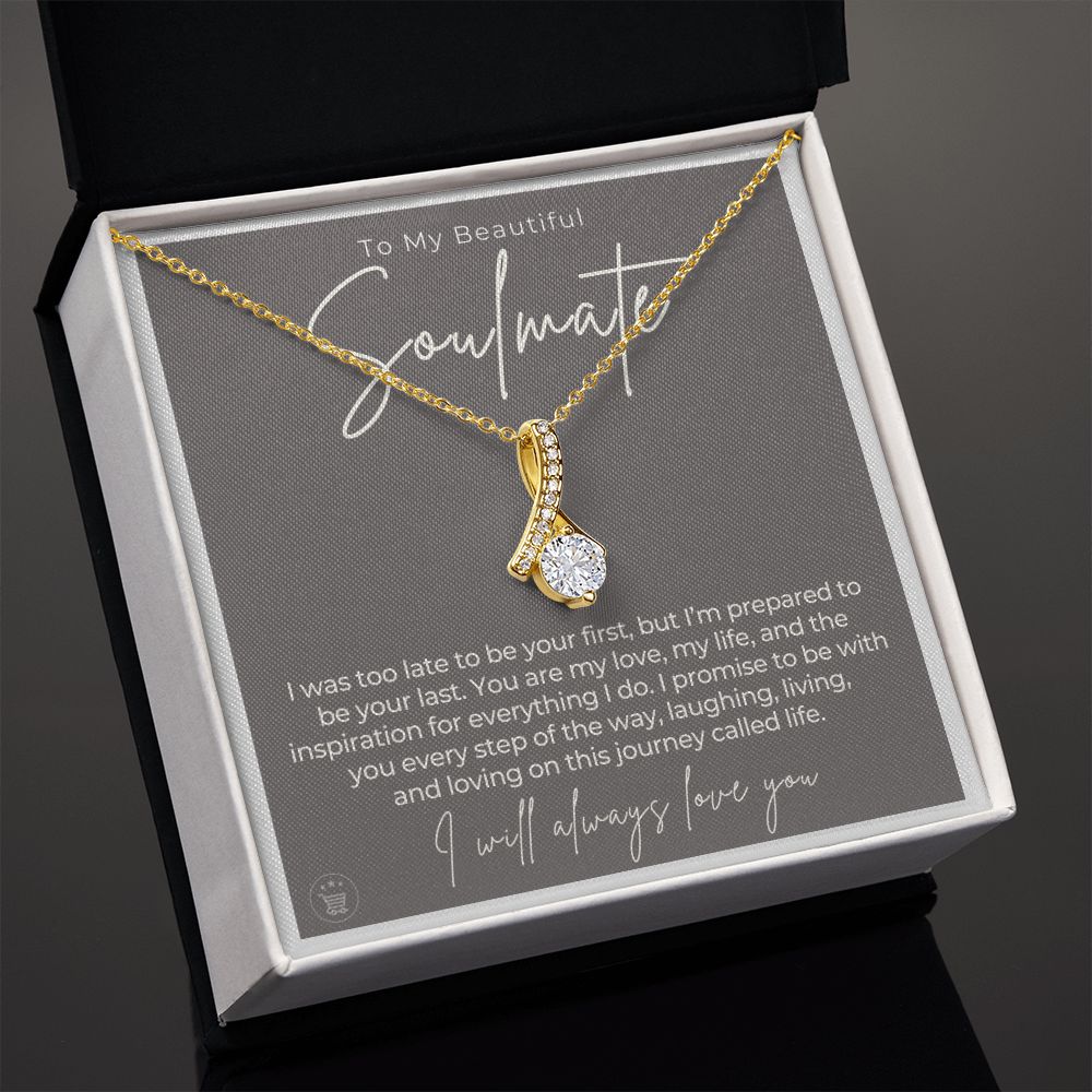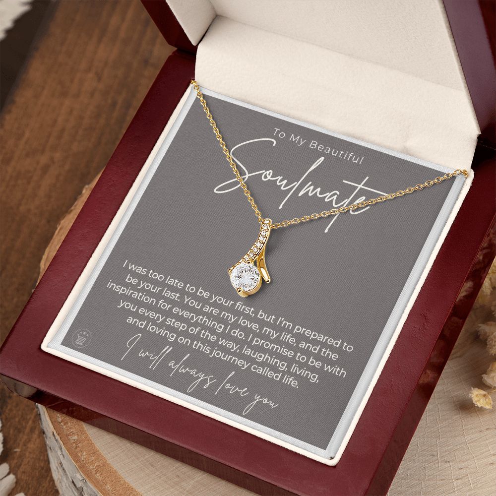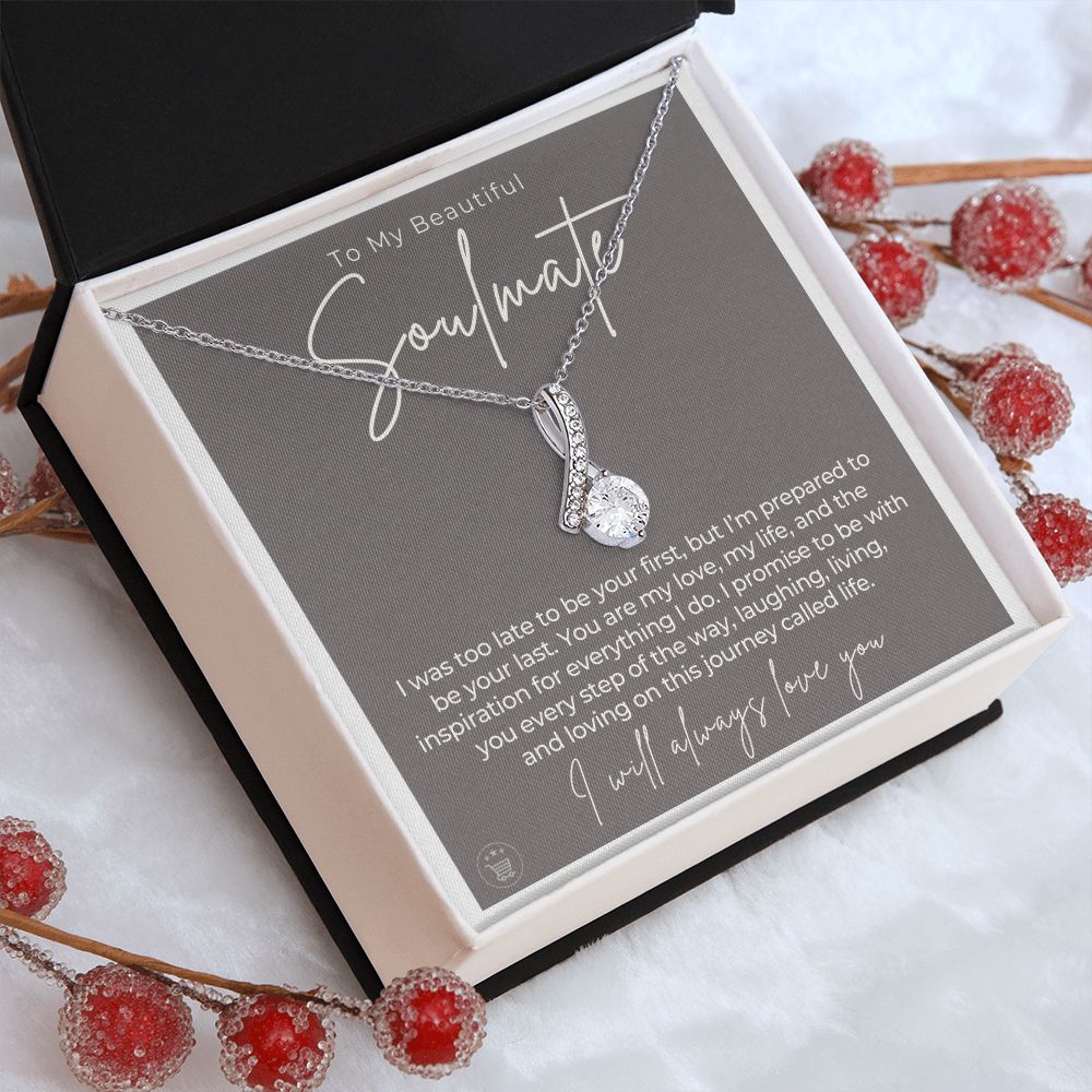 If you’re looking for a unique and special gift to give your soulmate on a special occasion, then look no further! This beautiful necklace is crafted with love and thoughtfulness. The pendant necklace comes in an elegant gift box with a sweet message that will surely make your soulmate feel loved and appreciated!