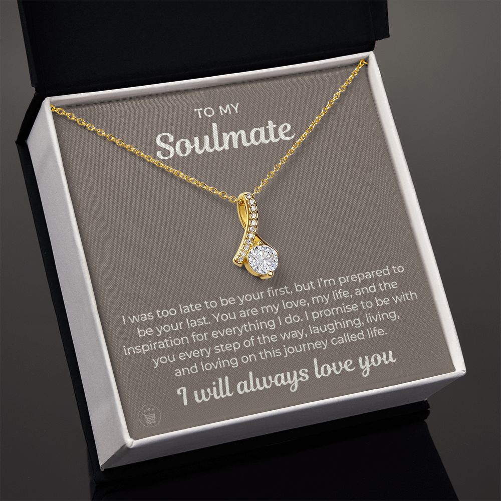 If you’re looking for a unique and special gift to give your soulmate on a special occasion, then look no further! This beautiful necklace is crafted with love and thoughtfulness. The pendant necklace comes in an elegant gift box with a sweet message that will surely make your soulmate feel loved and appreciated!