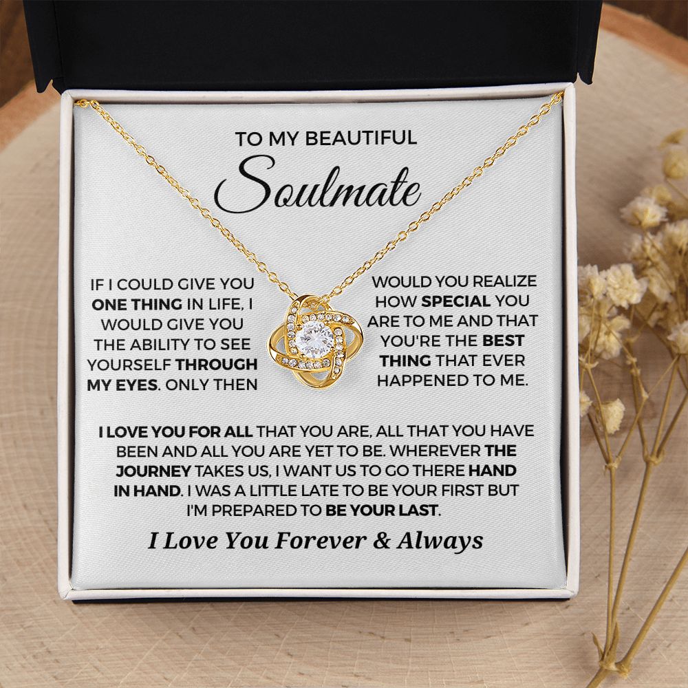 If you’re looking for a unique and special gift to give your soulmate on a special occasion. This beautiful necklace is crafted with love and thoughtfulness. The pendant necklace comes in an elegant gift box with a sweet message that will surely make your soulmate feel loved and appreciated!
